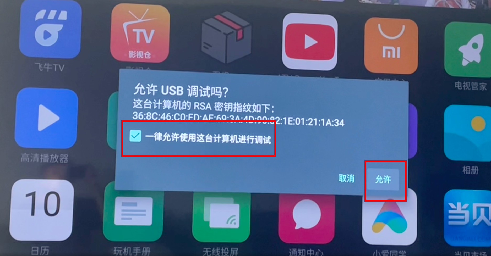 然后在fanalshell上面执行1.连接ADB按钮输入电视的ip