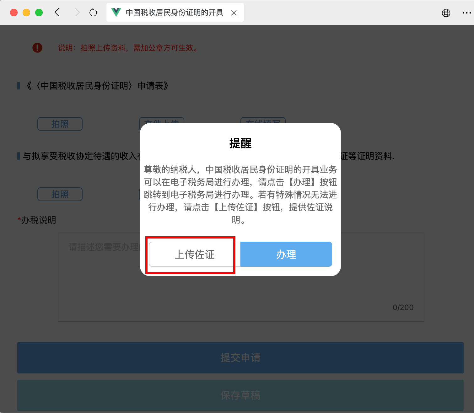 依次点击业务列表-国际税收-中国税收居民身份证明