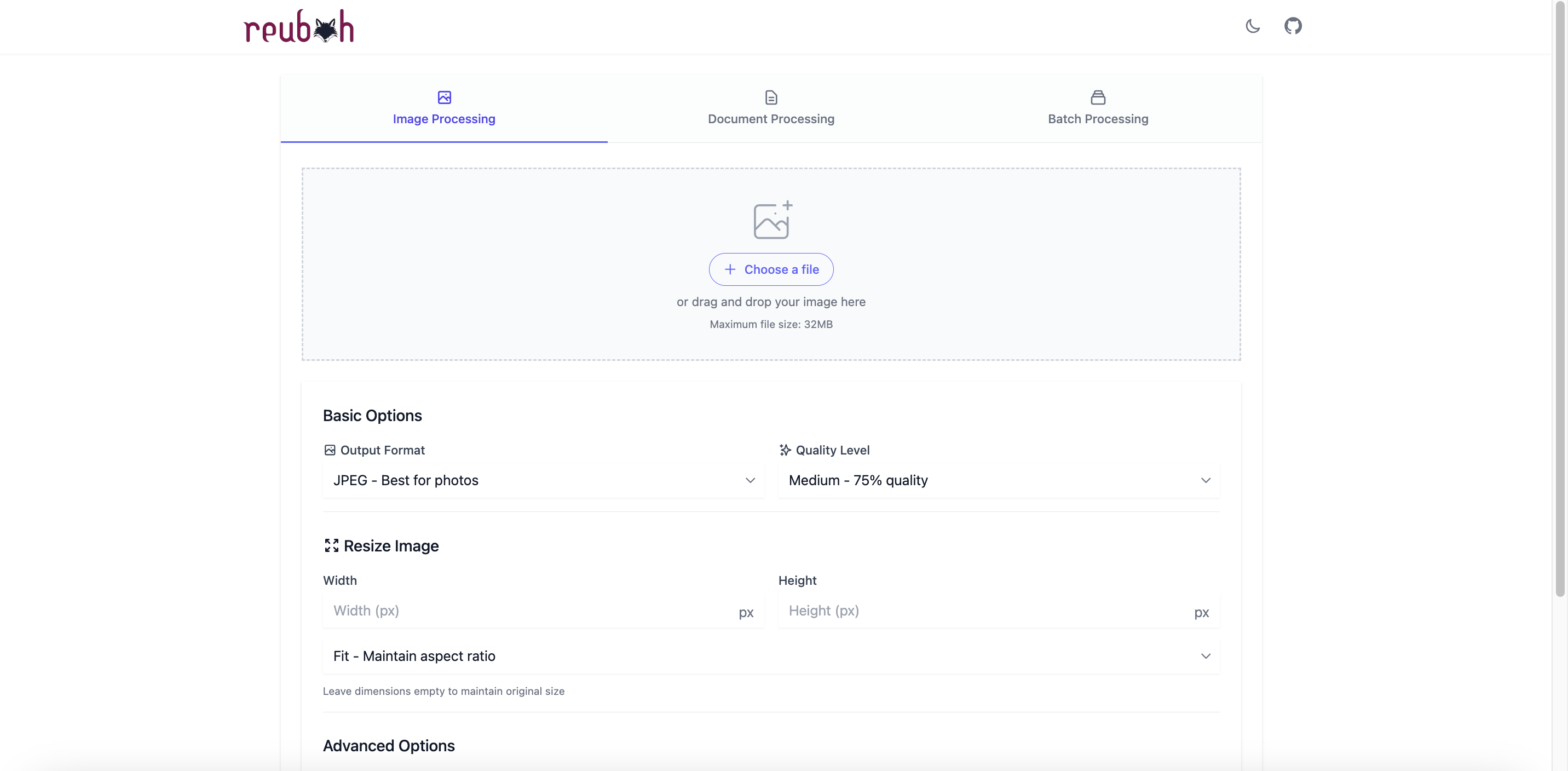在飞牛云或者VPS用Docker搭建一个网页版的图像处理和文档转换工具-reubah
